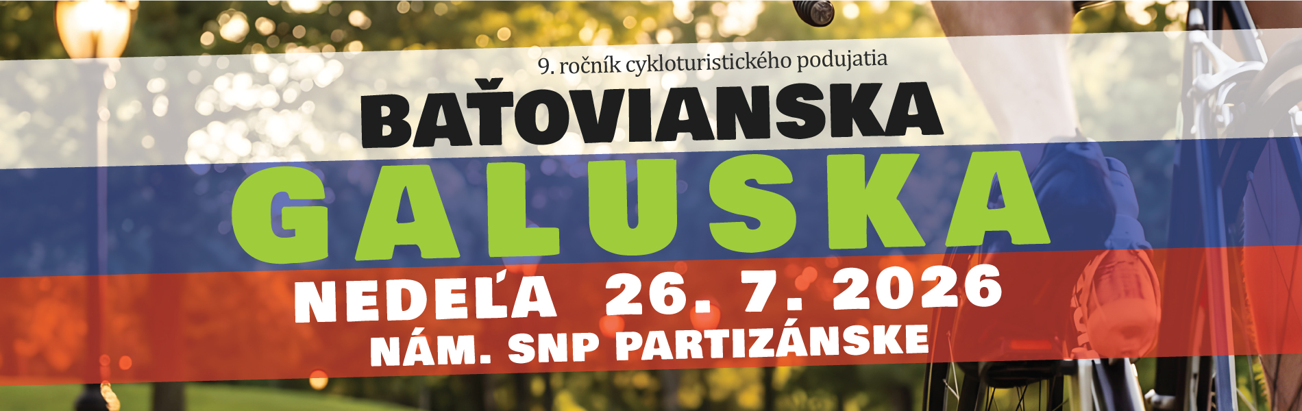 Tradičná cyklo-turistická párty Baťovianska galuska bude mať v tomto roku deviaté pokračovanie. Uskutoční sa v poslednú júlovú nedeľu 26.7.2026 so štartom na Námestí SNP v Partizánskom.