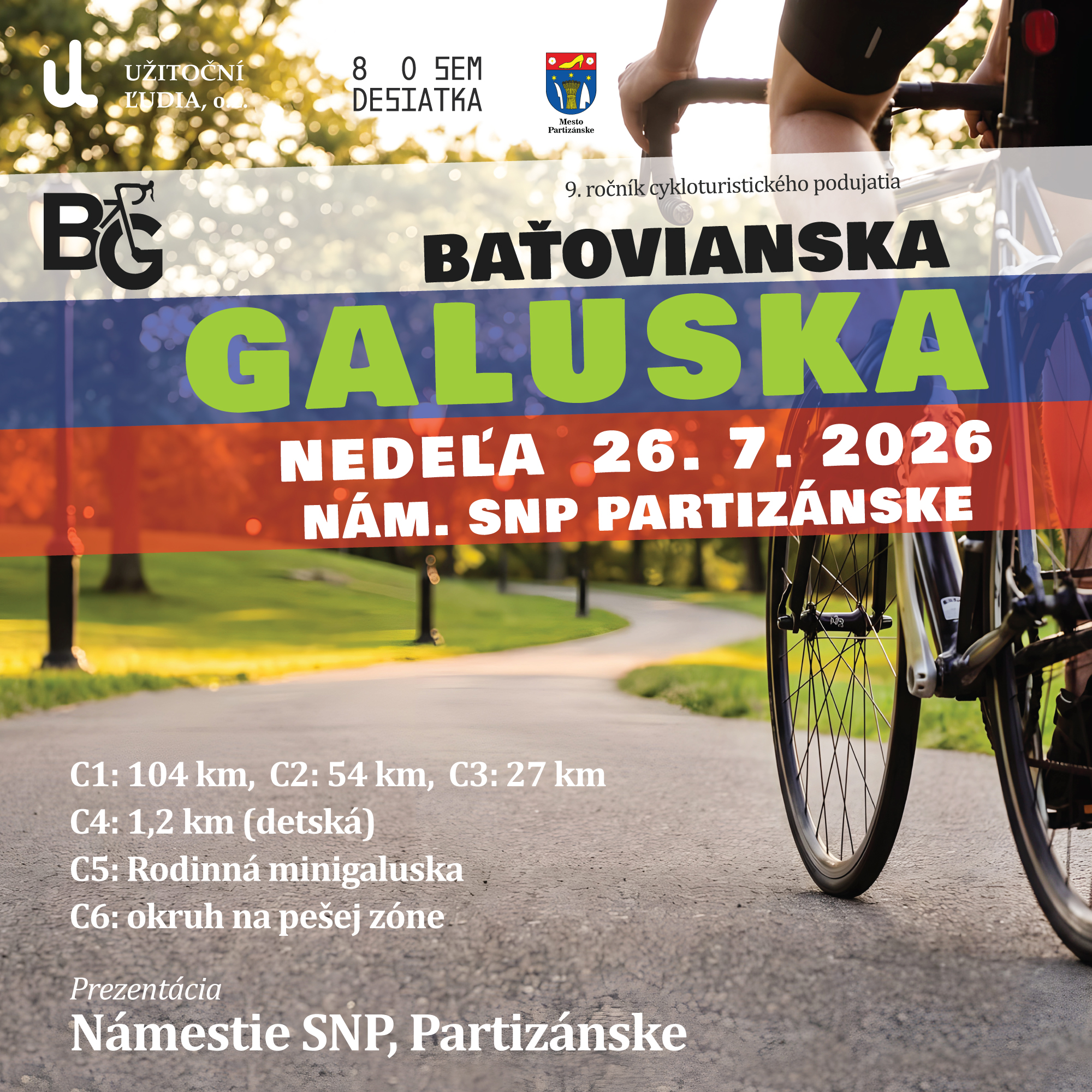 Tradičná cyklo-turistická párty Baťovianska galuska bude mať v tomto roku deviaté pokračovanie. Uskutoční sa v poslednú júlovú nedeľu 26.7.2026 so štartom na Námestí SNP v Partizánskom.